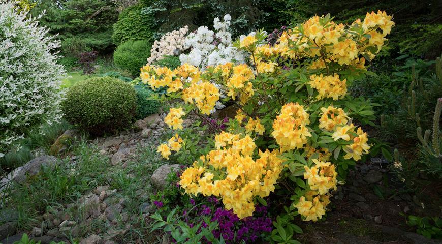 Gul passer bra med hvilken som helst annen farge, så den kan plantes trygt med andre typer azaleaer som er tilgjengelige for dyrking i regionen. Det er populært å plante busker ved siden av bartrær, for eksempel thuja eller einer.