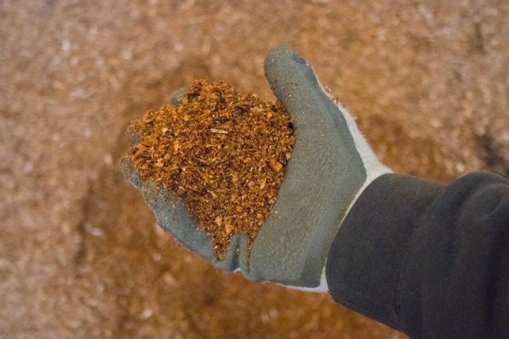 - Klumpen plasseres i en stor beholder med vann til jorden er helt gjennomvåt.