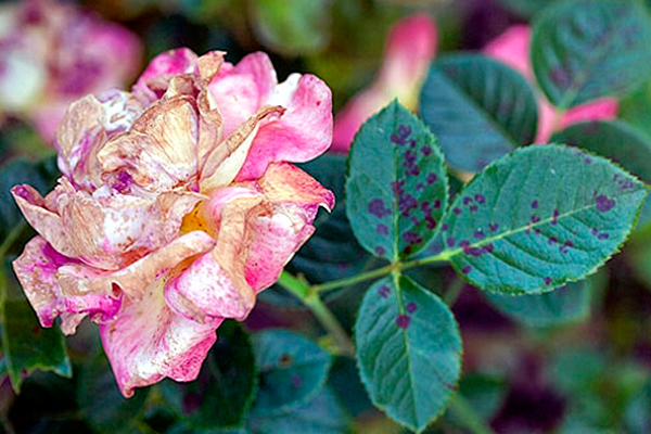 - På grenene av en rose kan det være bakterieforbrenninger som oppstår om vinteren av en busk under et dekkmateriale. Hvis du ikke kutter ut en slik skyting, kan brenningen gå til andre grener.