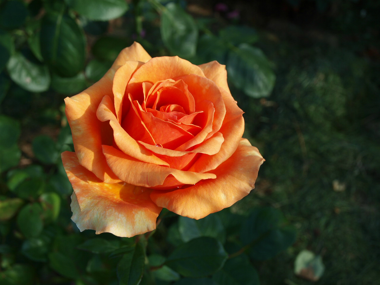 Ashram Hybrid Tea Rose kan variere i farge fra fersken-oransje til kobber-murstein nyanser med alle mulige undertoner, nærmer seg rosa når den visner. Blomster kan være enkle eller samles i blomsterstander på 3-5 stykker, som ikke falmer lenge i kuttet. Aromaen er delikat og lett.
