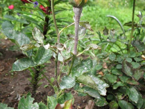 Det anbefales å bruke kolloidalt svovel i begynnelsen av sykdommen, når løvverket til rosen akkurat begynner å bli hvitt. Kontakt soppdrepende middel oppløses (30 g) i 10 liter vann. Hvis lufttemperaturen ikke har steget over 18 grader, anbefales det å øke konsentrasjonsnivået til løsningen.