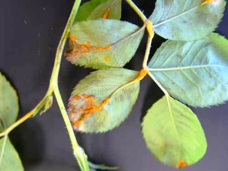 Ulike planter kan bli syke. Rustne flekker vises på løvet på baksiden. De blir svarte over tid. Skudd egner seg til krumning. Løvverket blir gult og faller av. Rosen slutter å blomstre. Hvis ikke medisinske tiltak blir tatt i tide, vil bushen dø. Infeksjonen vil spre seg i hele hagen.