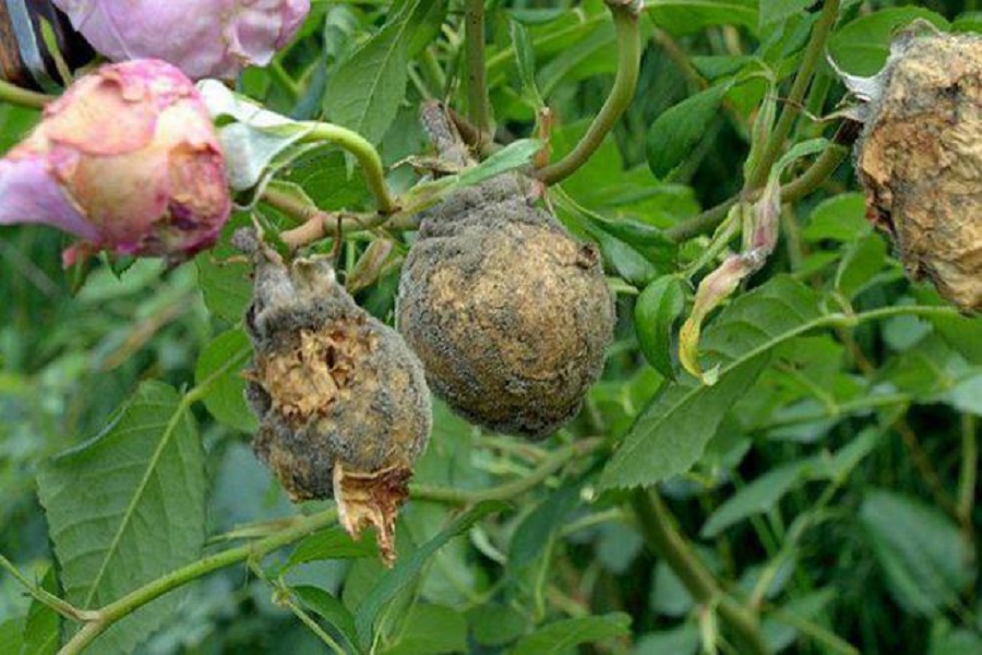 - Grå råte. I vått vær sprer den seg raskt på roser. Og på grunn av den tette plantingen er det så lite mellomrom mellom blomstene at fuktigheten ikke rekker å fordampe. Jorden tørker ut lenge etter en regnskur.