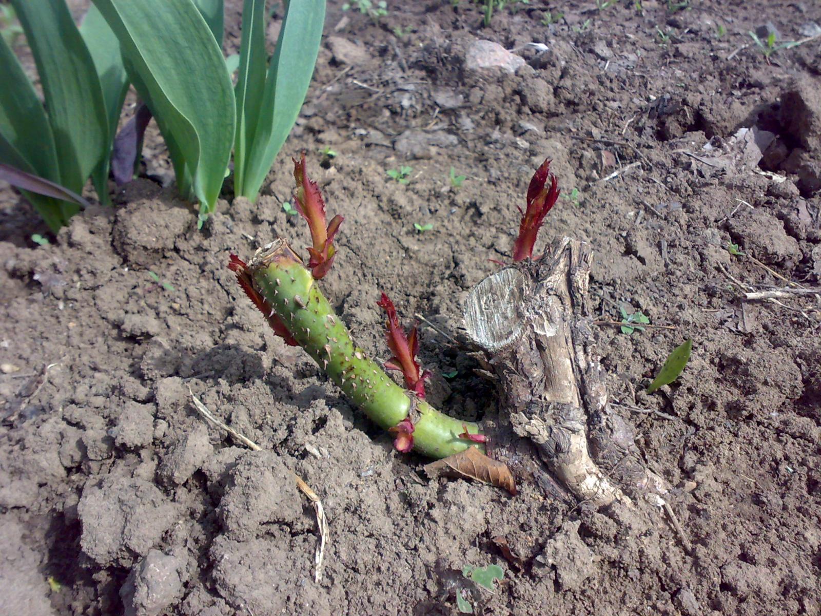 Når jord og frøplanter er klargjort, kan du begynne å plante. På det valgte stedet lages hull, 60 cm dype. Knust stein helles i bunnen, deretter organisk gjødsel. På slutten dekkes hullet med et underlag og frøplanten plantes, røttene er pre-rettet. Knoppene skal være 3 cm under bakken. Avstanden mellom hullene må respekteres. For å forhindre at ugress spirer, er jordoverflaten mulket med humus eller sagflis. Den siste fasen er rikelig vanning av planten.