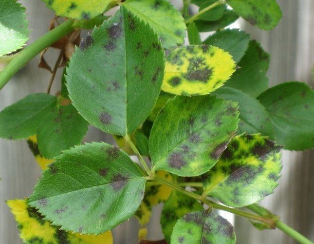 - Først er utseendet på svarte flekker på rosens blader funnet nedenfor.