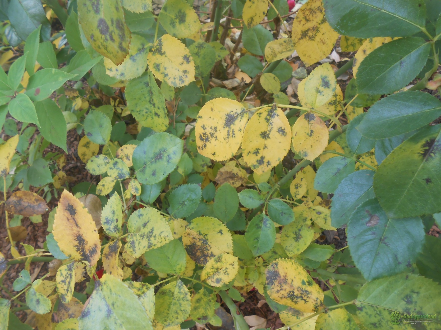 Roseblader kan begynne å mørkne på grunn av utviklingen av svart flekk