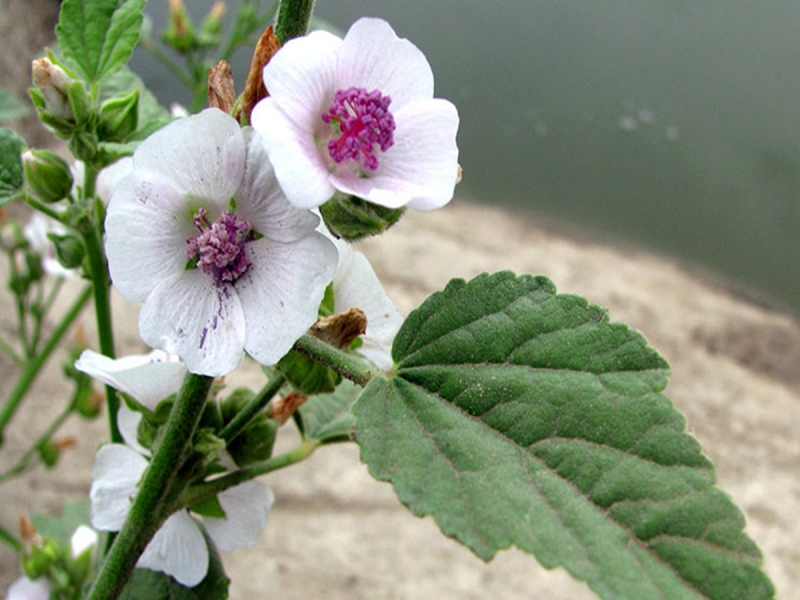 Marshmallow-sorten er en flerårig urteaktig busk som når 2 m i høyden. Rotsystemet er veldig kraftig, det er ingen torner, i stedet for dem er stilkene og bladbladbladene dekket av villi. Blomstene er store, hvitrosa i fargen, og ligger på korte peduncles.
