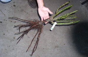 - Skudd blir kuttet slik at omtrent fem knopper blir igjen på dem.