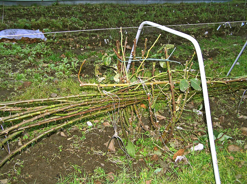 - vippene er bøyd, om nødvendig i flere trinn, innpakket med et ikke-vevd dekkmateriale og lagt på grangrener.