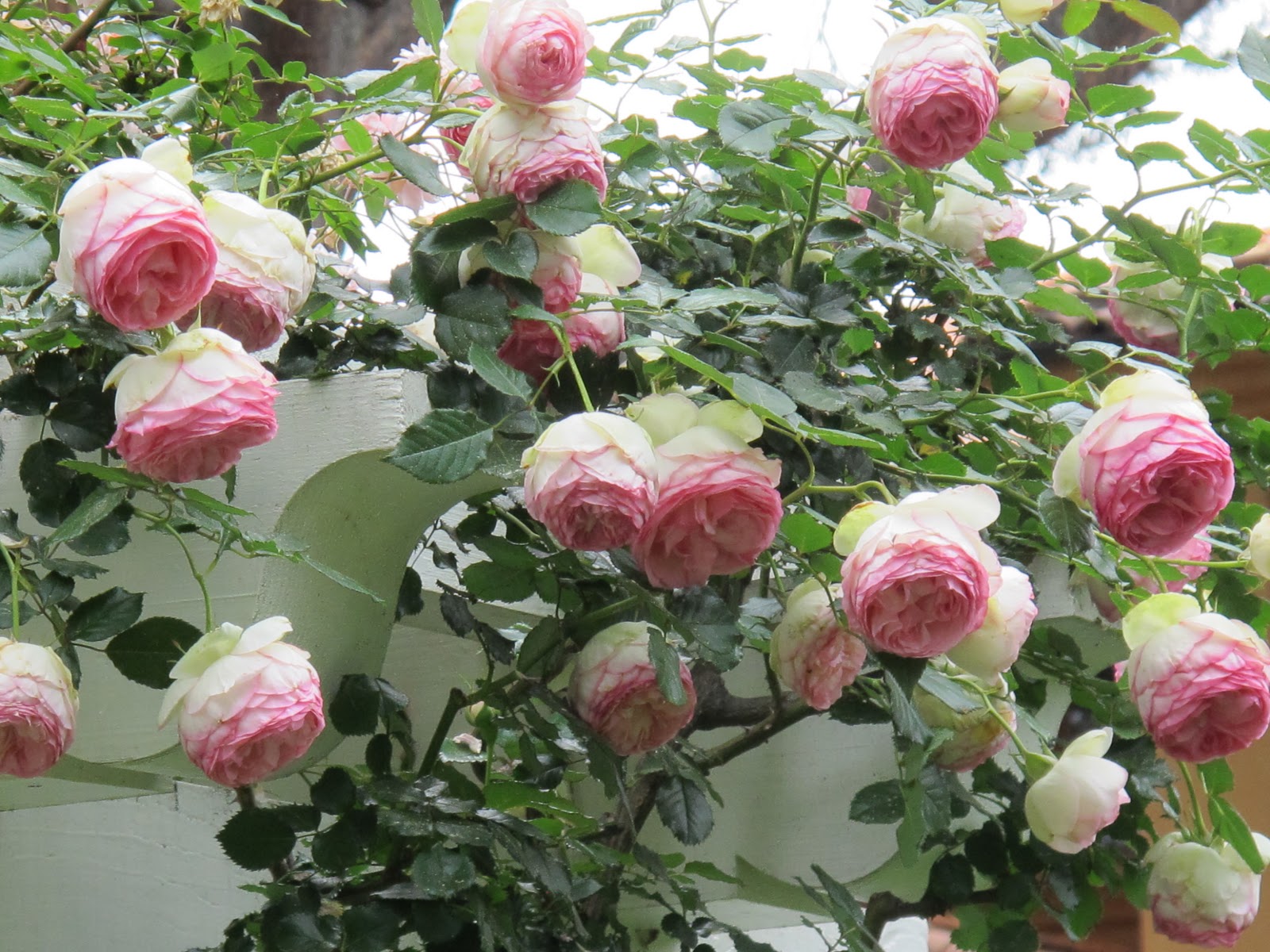 Tette doble blomster i elfenbenskygge, med rosa pust langs kanten av kronbladet, henger under egen vekt. Variasjonen ble skapt for middelhavshager; i kule regioner kan det hende at knoppene ikke åpnes før slutten, noe som gir rosen en ekstra sjarm.