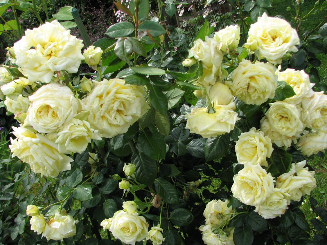 Lyse blomster og tett grønt vil bidra til å transformere selv det mørkeste hjørnet av hagen. Disse rosene gir hagen et romantisk preg.