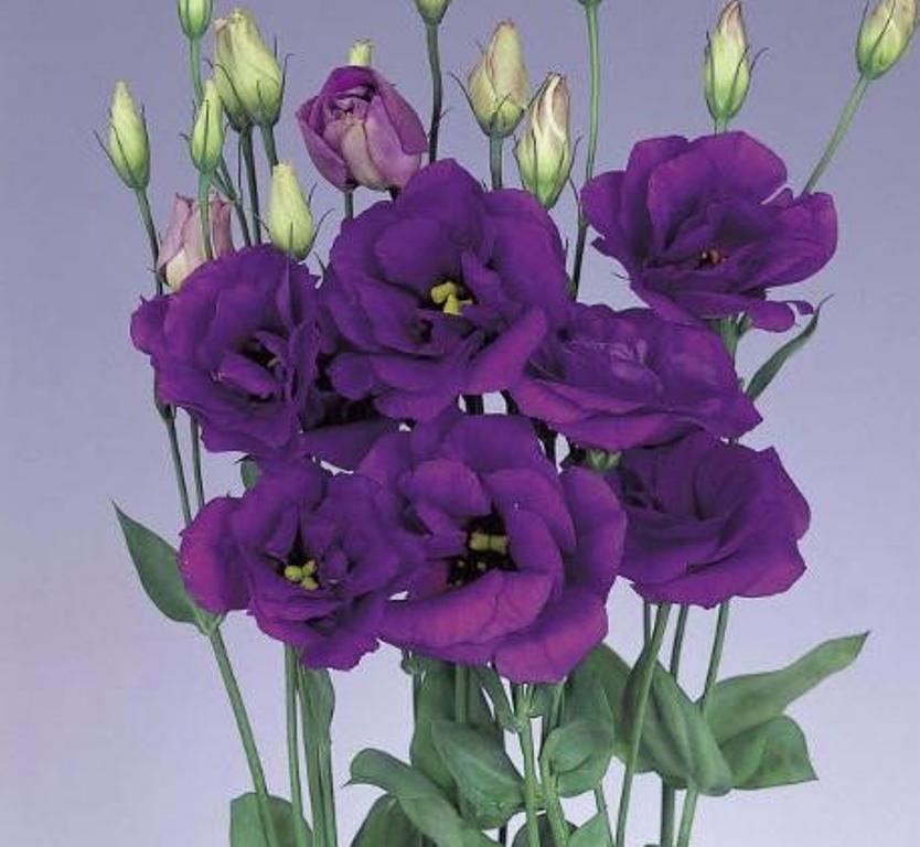 Denne flerårige eustoma er veldig lik den lilla eustoma. Forskjellen er i skyggen av blomstene: i en voksen flerårig er de en veldig vakker mørk lilla eller lilla nyanse.