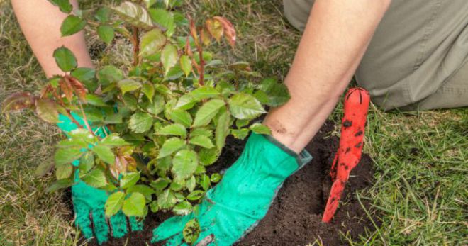 - Gjødselblandingen helles i bunnen. Rose Mistral er ikke lunefull, men i de første dagene vil planten trenge styrke for å tilpasse seg.