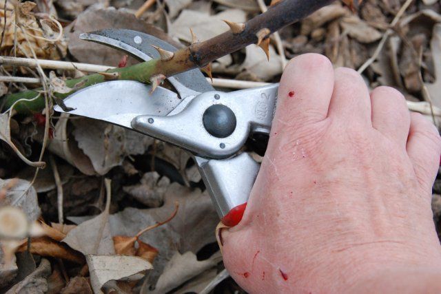 - Røttene til busken er nøye kuttet 1-2 cm.