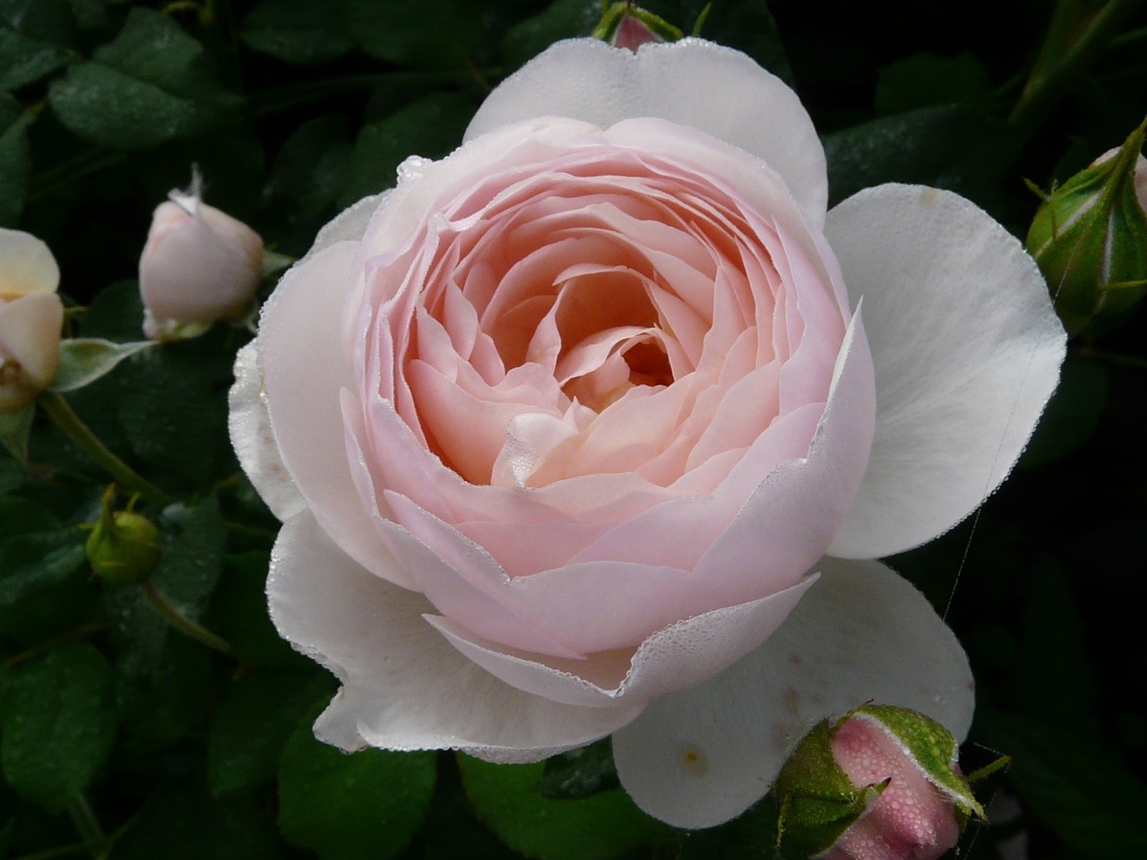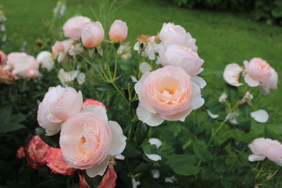 Den engelske skjønnheten blomstrer fra juni til oktober i flere hovedbølger, men visuelt kan den se ut som en kontinuerlig blomstring over hele buskens overflate.