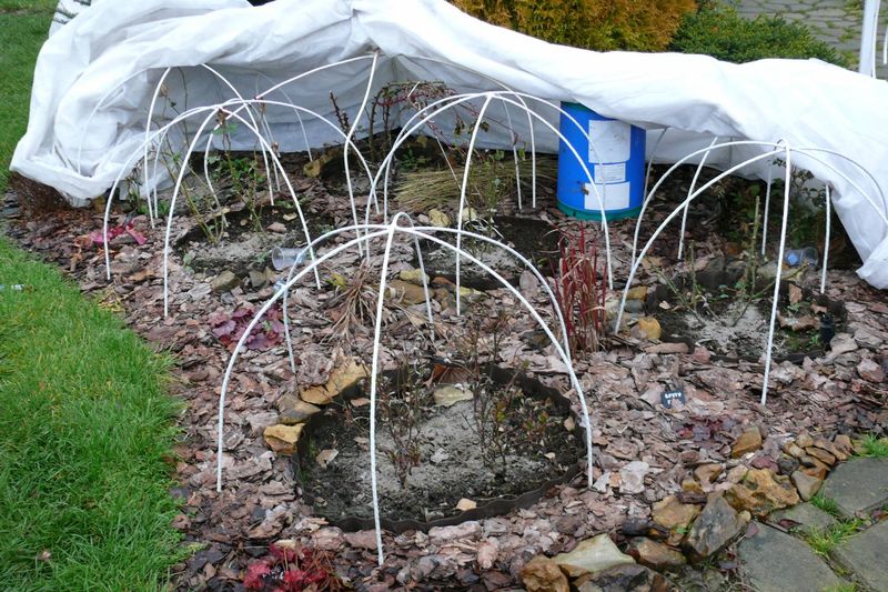 For vinteren begynner buskene å bli klargjort i slutten av oktober - de er forsiktig pusset med sand. Ved den første frosten fjernes blader og knopper fra rosene, stilkene bøyes til bakken, og deretter gir de et overjordisk tak som ikke kommer i kontakt med planter: en drivhusfilm eller ikke-vevd materiale er installert på ramme.