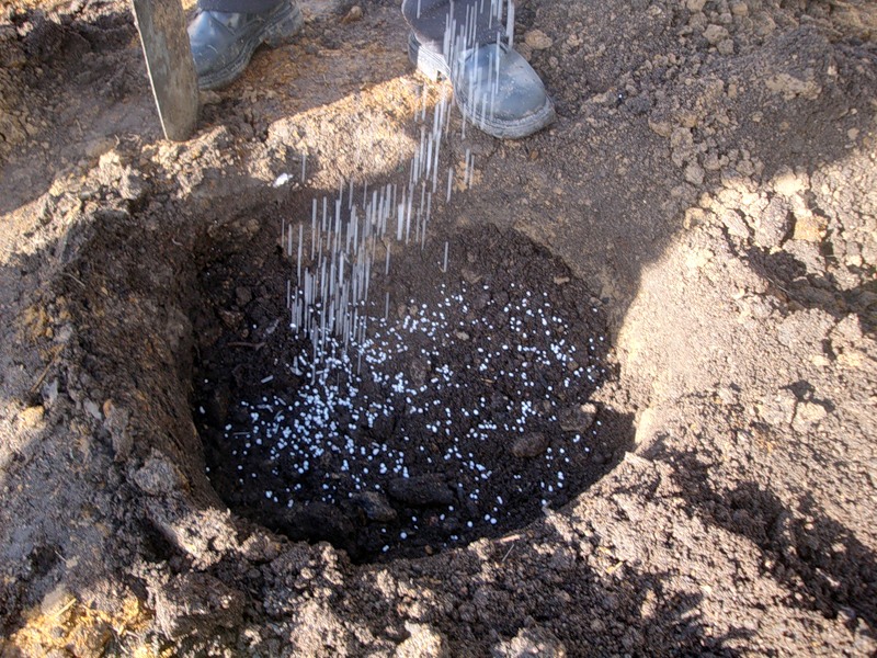 Etter at plantehullet er gravd (størrelse i gjennomsnitt 50x50), må du begynne å forberede jorden: den er grundig gravd opp; lage organisk gjødsel, aske og komplekse gjødsel til roser.