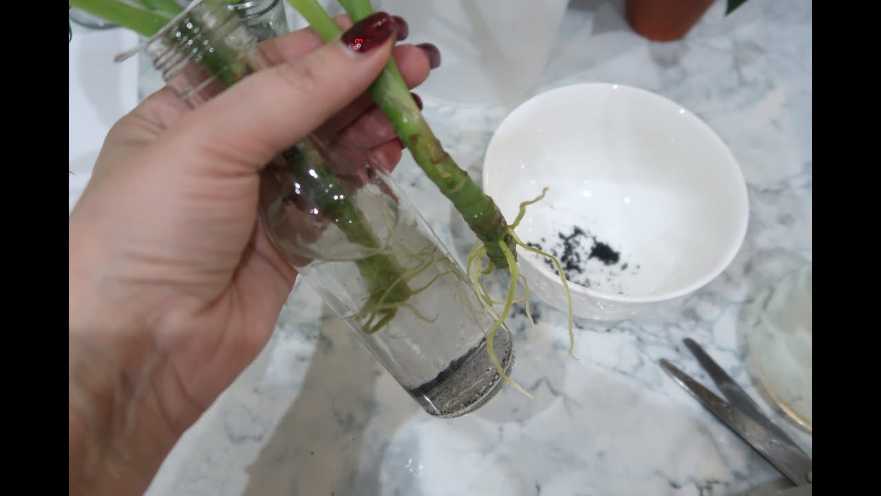 Du kan spire en stilk i en potte med jord. Stilken plasseres i jorden i en vinkel på minst 2-3 cm. Det er mulig på nivå med den andre knoppen. Helles deretter rikelig med vann ved romtemperatur. For å unngå skorpedannelse må du dekke jordoverflaten med tørr jord. Til slutt lager du et drivhus for spiren ved å dekke den med en glasskrukke eller kuttet plastflaske.