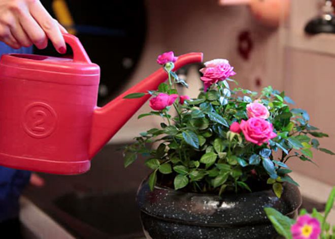 Når du dyrker roser i en leilighet, må du definitivt tenke på nyttige dressinger. Gjødsle jorden annenhver uke om våren, sommeren og høsten. Mineral- og organisk gjødsel bør veksles.Før du bruker dem, må du oppløse massen med vann.