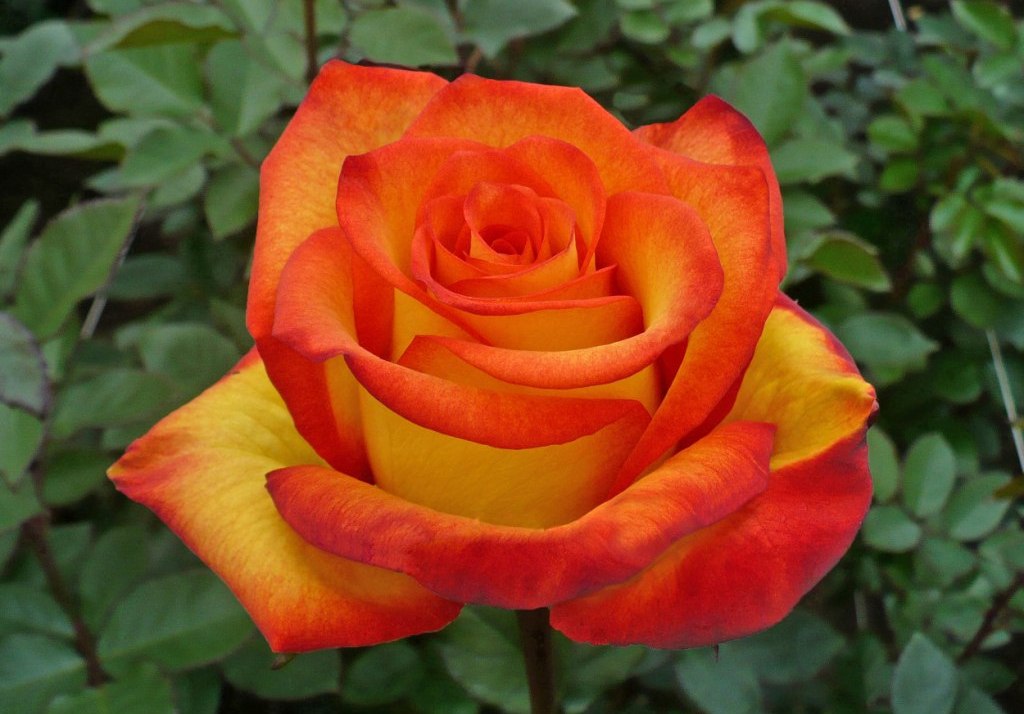 Denne kulturen er preget av høy tetthet av kronblader. De kombinerer gule og røde nyanser - kantene på knoppene er skarlagenrøde, og nærmere basen blir de lette. På grunn av denne fargen kaller noen gartnere sorten Orange Magic, selv om dette navnet ikke er helt riktig og ikke samsvarer med katalogen.