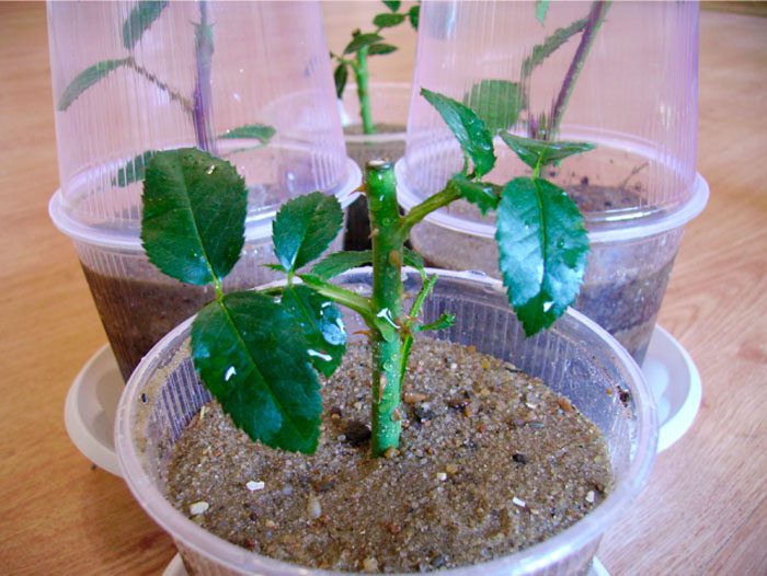 - Legg skjæringen i en beholder med vann i 1 måned. Beholderen skal oppbevares i et rom med en temperatur på +30 grader.
