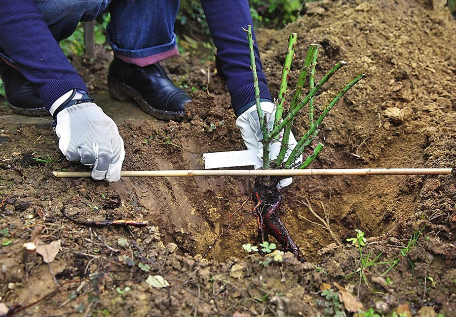 - Plante en frøplante, hold den forsiktig med hånden, fyll hullet med jord. Det er nødvendig å sørge for at vaksinasjonsstedet er dypere med 2-3 cm.