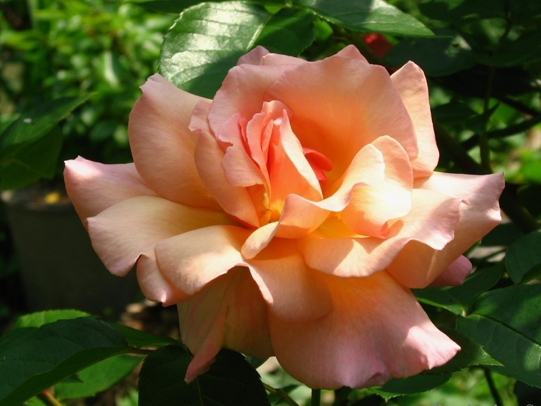 En dobbel blomst med en diameter på 12-15 cm har en form som er klassisk for hybridteroser. Aromaen er veldig sterk og behagelig. Et kronblad (det er opptil 45 av dem i en blomst) med en bølget kant på forsiden av en ren rosa nyanse, og på innsiden laks med fargetoner fra appelsin til fersken. Knopper dannes i endene av skuddene i en mengde på 1 til 5 stykker.