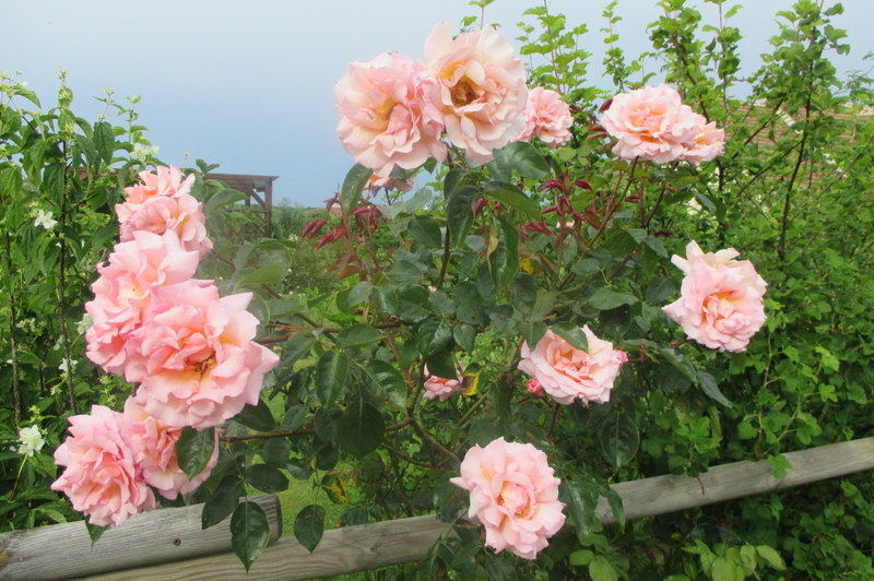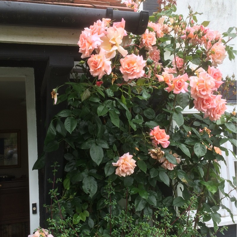 En klatrerose av engelsk utvalg under navnene Compesion, eller Belle de London, er en fantastisk dekorasjon av hagen. Dens doble blomster av en lakseskygge opp til 15 cm i diameter blomstrer på busker opp til 3 m høye.