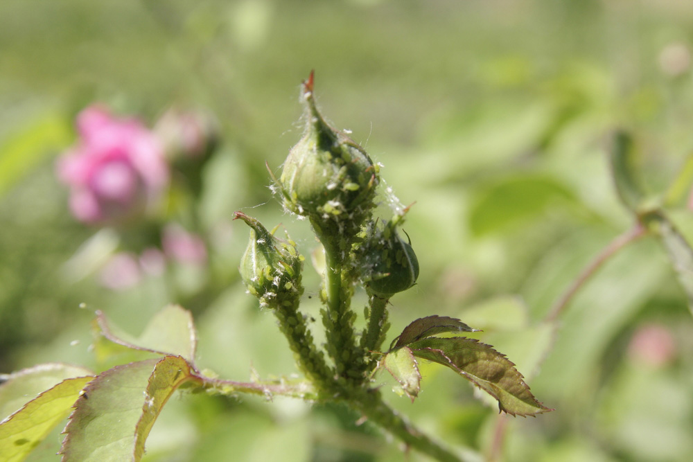 Rose bladlus kan påvirke ikke bare løvverk av planten, men også unge løp. Dette er det vanligste og vanligste skadedyret. Men den rosesagflisen infiserer stilkene fra innsiden, siden dette skadedyret legger larvene under skuddbarken. Midd begynner å ødelegge planten fra bladene og omslutter dem i spindelvev.