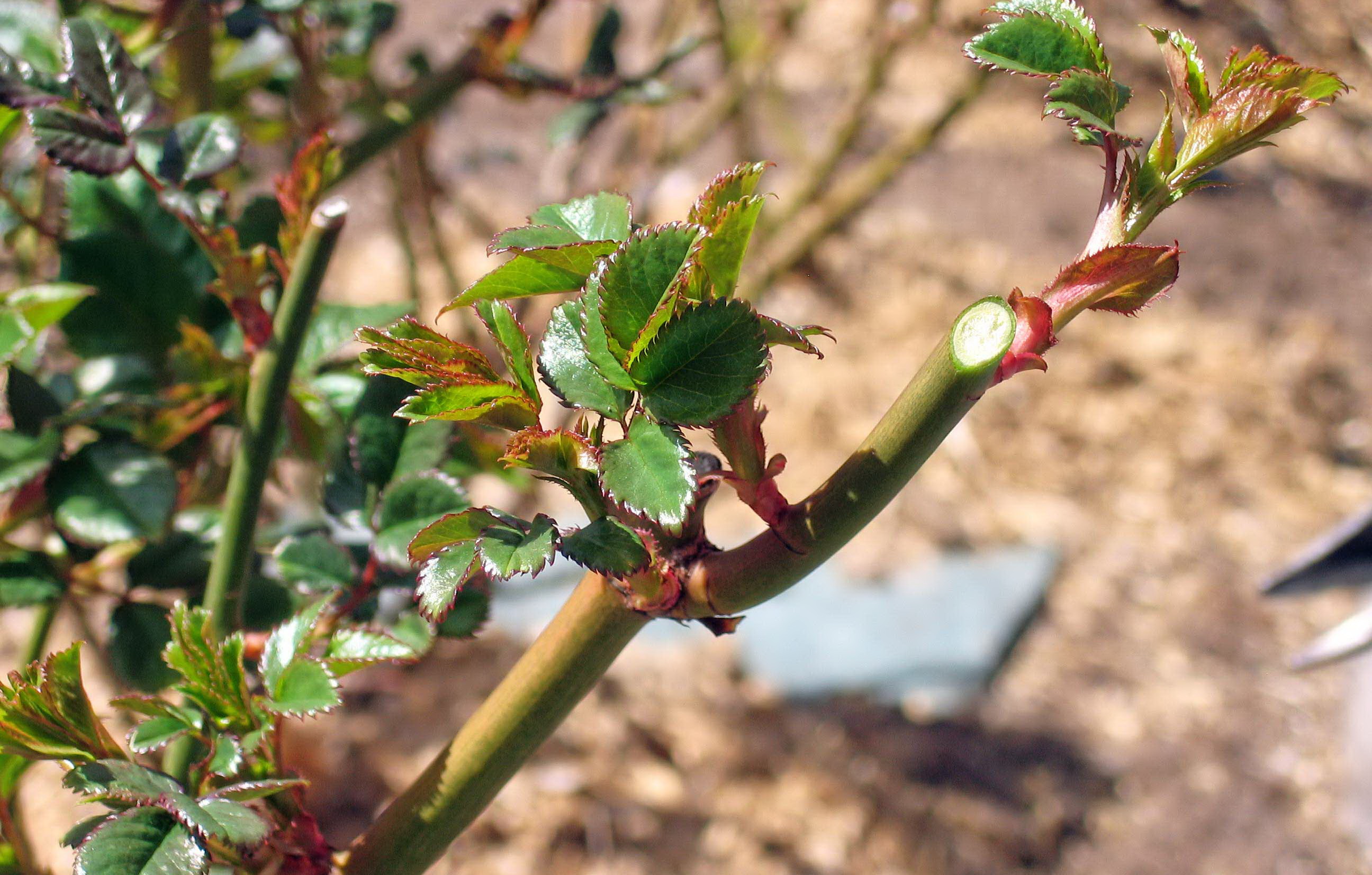 - Skudd som er ett år gamle kappes av 1 cm brede stykker med tre knopper.