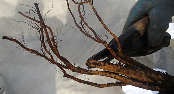 Før plantingen av en busk må plantene plasseres i en løsning av et rotvekststimulerende middel, for eksempel heteroauxin. Takket være dette tar planten bedre rot og tåler plantingen lettere. Hvis rotsystemet er for langt, kan det lønne seg å beskjære litt.
