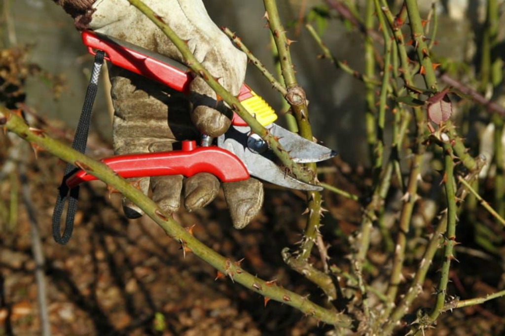 For å trimme og ta vare på en rose, trenger du en beskjæringsaks med skarpe kniver som ligner et saks. Med et slikt verktøy kuttes greiner jevnt, og skorpen flasser ikke av. Det er bedre at beskjæreren bare brukes til å ta vare på roser.