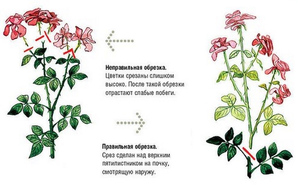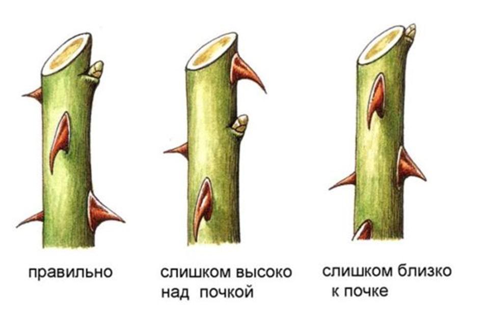 For at beskjæring skal være gunstig, må du vite hvordan du skal beskjære buskrosen riktig. Kuttet skal være skrått, plassert 0,5 cm over nyrene.