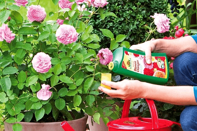 Nitrogenholdig toppdressing påføres til midten av sommeren, unge skudd skal modnes før vinteren. Siden juli, for en vellykket overvintring, blir roser befruktet med kalium-fosfor-komplekser. Den siste dressingen påføres i september, her kan du bruke: