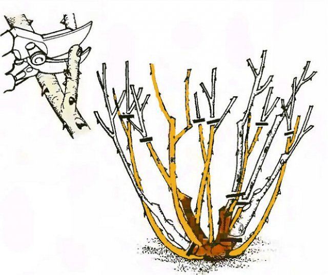 Etter 3-4 år av livet krever buskene foryngende beskjæring, når de eldste og brune grenene blir kuttet til rotkragen, og stimulerer veksten av erstatningsskudd (basal). Korrekt beskjæring vil holde rosebusk dekorativ i lang tid.