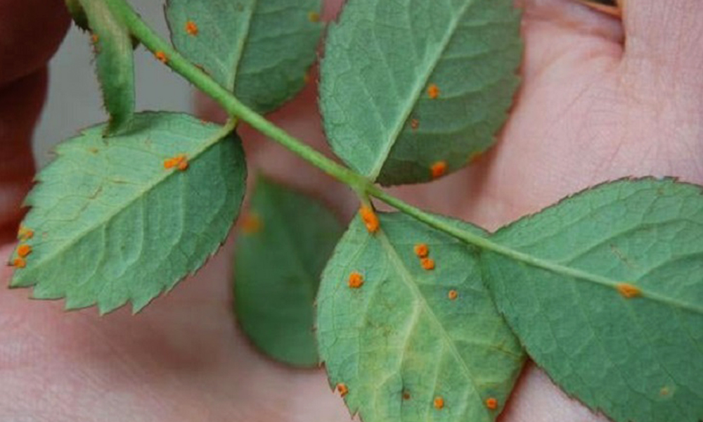 - Rosa rust (oransje pads). Sykdommen utvikler seg raskt og krever behandling med insektdrepende stoffer.