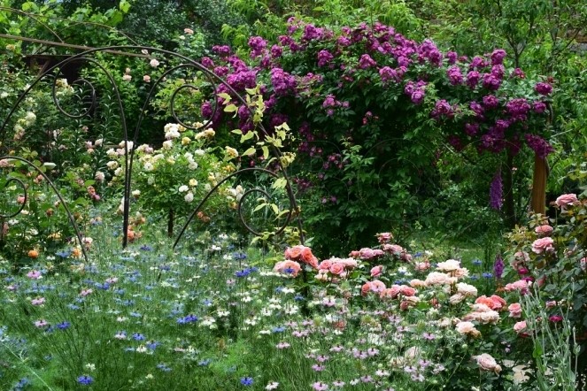 Klatreroser har en stor fordel i forhold til andre typer kultur. De kan brukes til vertikal hagearbeid i hagen, plante nær støtter, lysthus, sette dem på buen. Det er en slik rose som Perennial Blue er, hvis lilla-lilla blomsterstand kan brukes til å dekorere ethvert lokalt område.