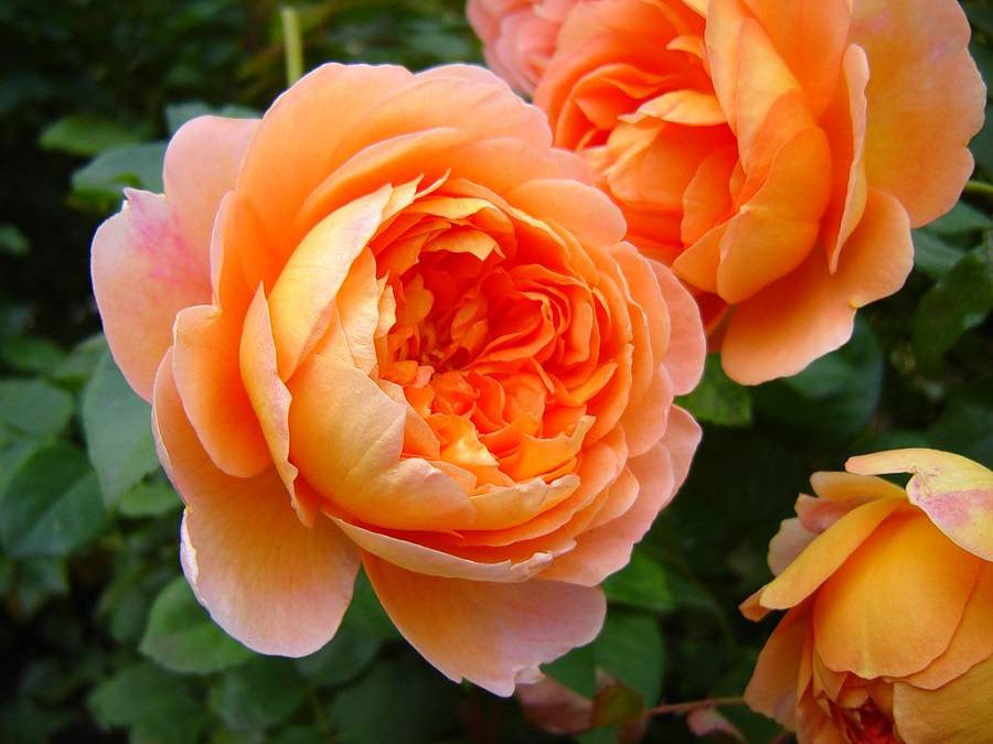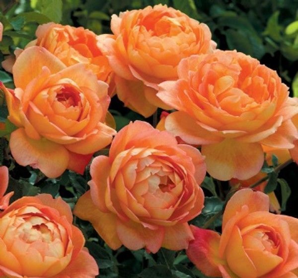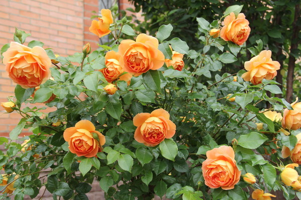 Rose Pat Austin er en av de første som blomstrer. Med riktig pleie og tilstrekkelig fôring i Middle Lane, dekker knoppene busken fra midten av juni til frost.
