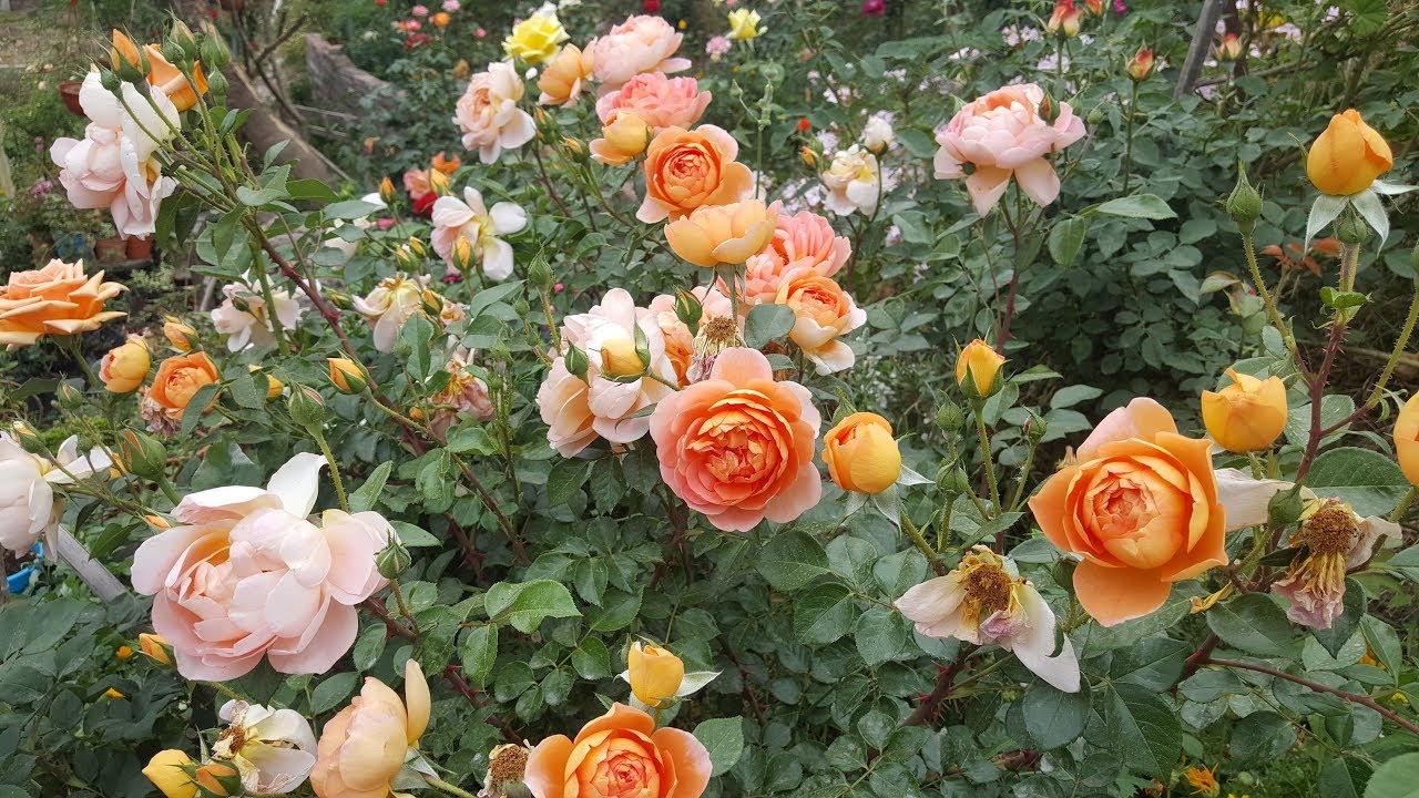 For roser, velg et flatt område eller med en skråning som ikke overstiger 10%. De fleste av dem har det bra utendørs. Men Pat Austin i sør bør plantes under beskyttelse av store busker eller trær med en gjennomsiktig krone.