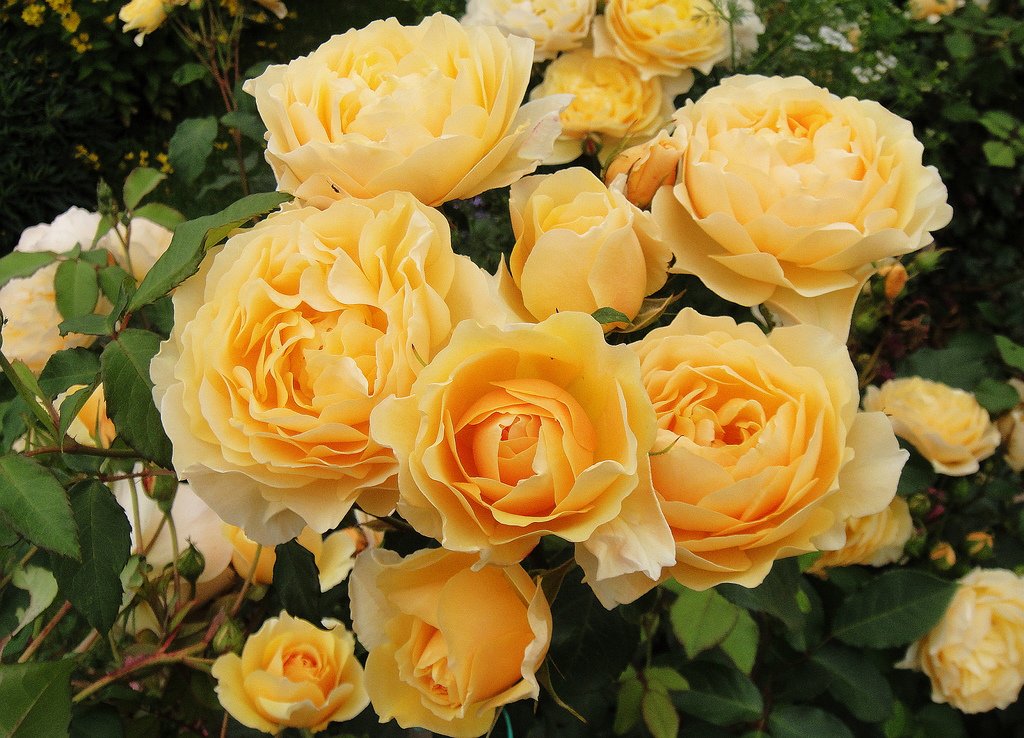 Takket være arbeidet med engelske oppdrettere ble pionroser med gule kronblad født. Slike varianter er elsket av russiske blomsteravlere for deres upretensiøsitet og motstand mot plutselige temperaturendringer.