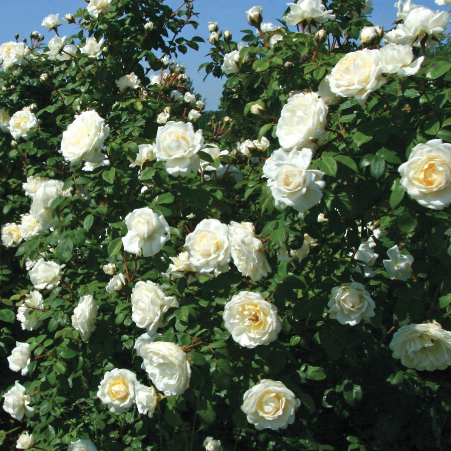 Sorten tilhører den musky arten. Knopper med en diameter på 11 cm har en pen avrundet form. Sorten har en funksjon: Når kronbladene er lukket, er de kremete, når de blomstrer blir de rene hvite.