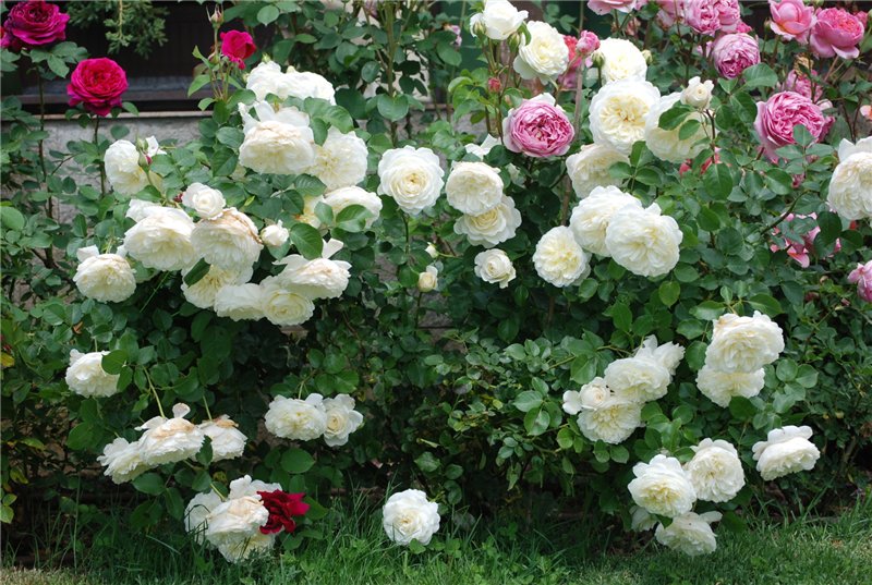 Det er få hvite hybrider. Til tross for dette er de veldig populære blant blomsteravlere, da de ikke bare dekorerer bakgården, men også utstråler en behagelig aroma.