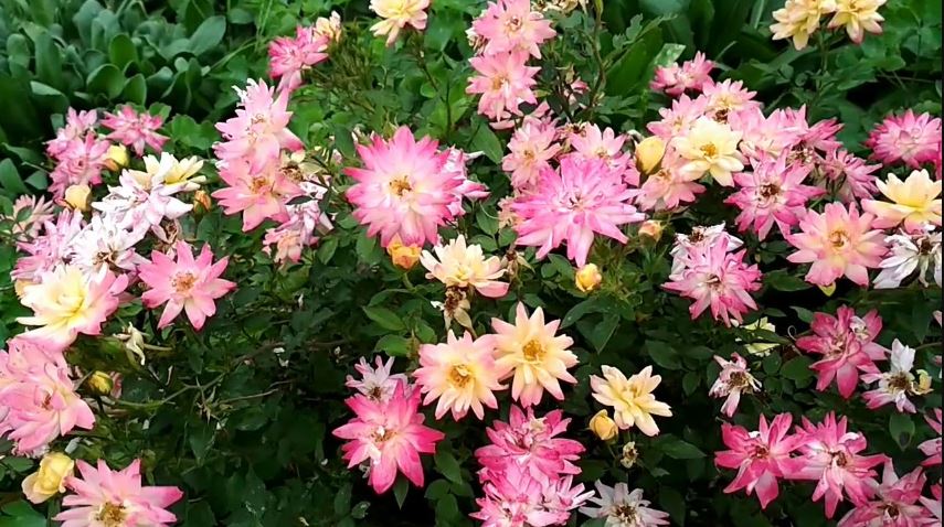 Polyantha rose regnes som en av de mest fargerike variantene. Hovedfunksjonen til planten er tofargede blader med en jevn overgang fra en tone til en annen. Buskene er ikke veldig høye, de vokser opp til 50-60 cm i høyden. Blomstrer er små, har 8-10 knopper.
