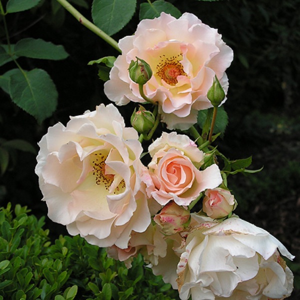 - Nydelig Rokoko. Det er en busk på ca. 1 m med doble store blomster og god immunitet mot mugg og svart flekk. Den blomstrer igjen og til frost.
