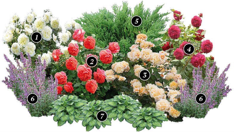Kombinasjoner av roser med andre planter
