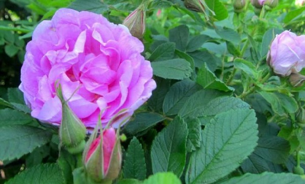 En upretensiøs rose som absolutt ikke trenger pleie. Buskene blomstrer en gang, kaster ut store, opptil 10 cm i diameter, lilla blomster. Grenene er rikelig dekket av torner. Blomstringen er lang, rikelig, og når busken blekner, vises enkeltprøver.