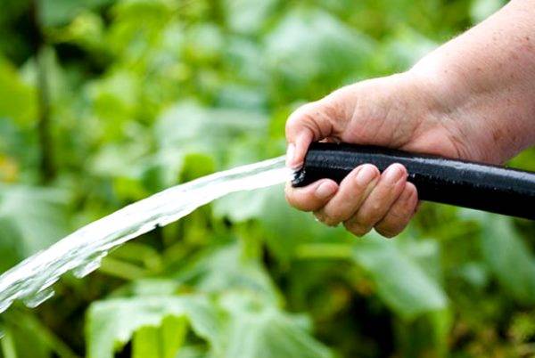 Kulturen krever ikke hyppig jordfuktighet. Derfor bør den vannes en gang i uken. Hell 1 bøtte med vann under busken.
