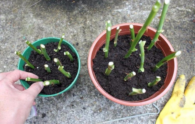 Stiklinger er det beste formeringsalternativet. Først må du inspisere de øvre grenene og velge de mest holdbare. Da er det verdt å trimme selve skjæringen. Det øvre kuttet skal gjøres rett fra nyrene, og det nedre kuttet i en vinkel nær nyrene. Den forberedte skjæringen skal plantes i sanden og dekkes med en krukke. Jorda må fuktes.