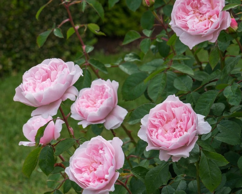 Rose Weasley er kjent for sine delikate perlerosa blomster. Sorten er populær ikke bare i hjemlandet i Storbritannia, men også i andre land.