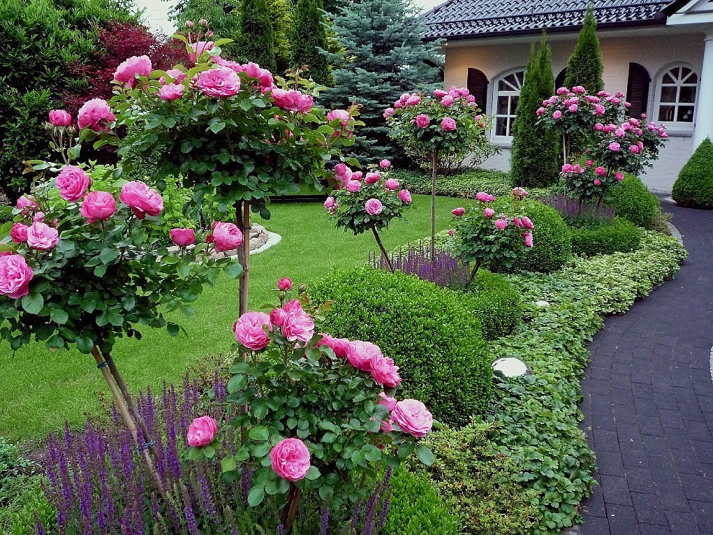 Når du lager et design, anbefales det å følge flere regler for hvordan du kan plante roser vakkert i forhagen: